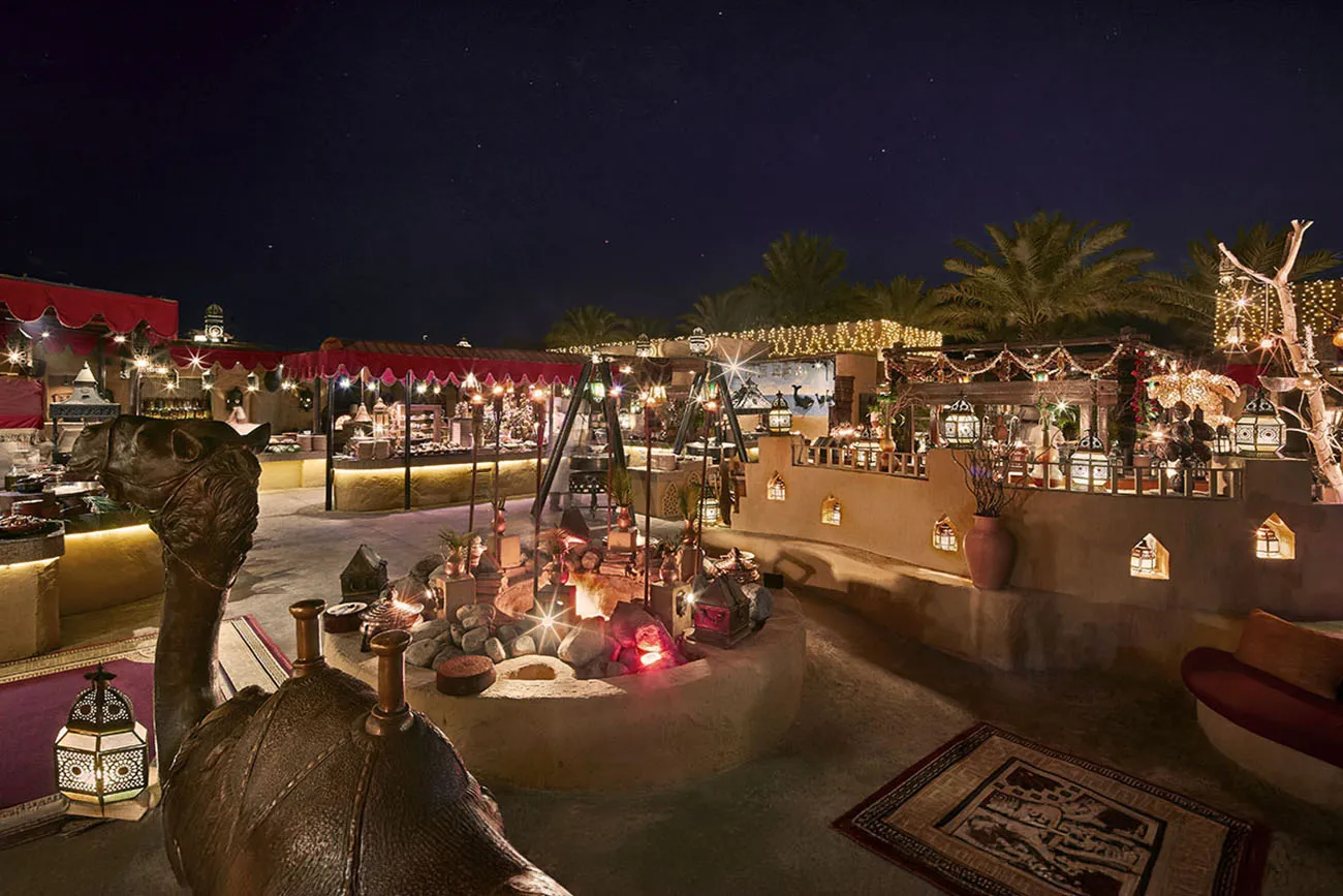 A: Bab Al Shams offers a premium desert retreat setting, private tables, high-end hospitality, and a luxurious Arabian ambiance.