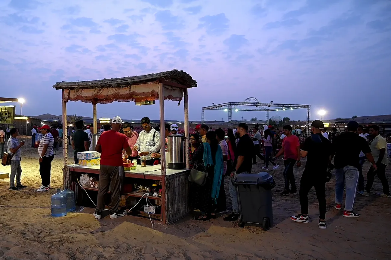 Your journey begins with a comfortable pick-up from your hotel/home in Dubai or Sharjah. After a scenic drive to Lahbab Red Dune Desert, we stop at a fully equipped desert meeting point, where you can relax in the AC rest area, use the washrooms, or explore a small Meena Bazaar with souvenirs like sand art and Arabic scarves (Ghutra).