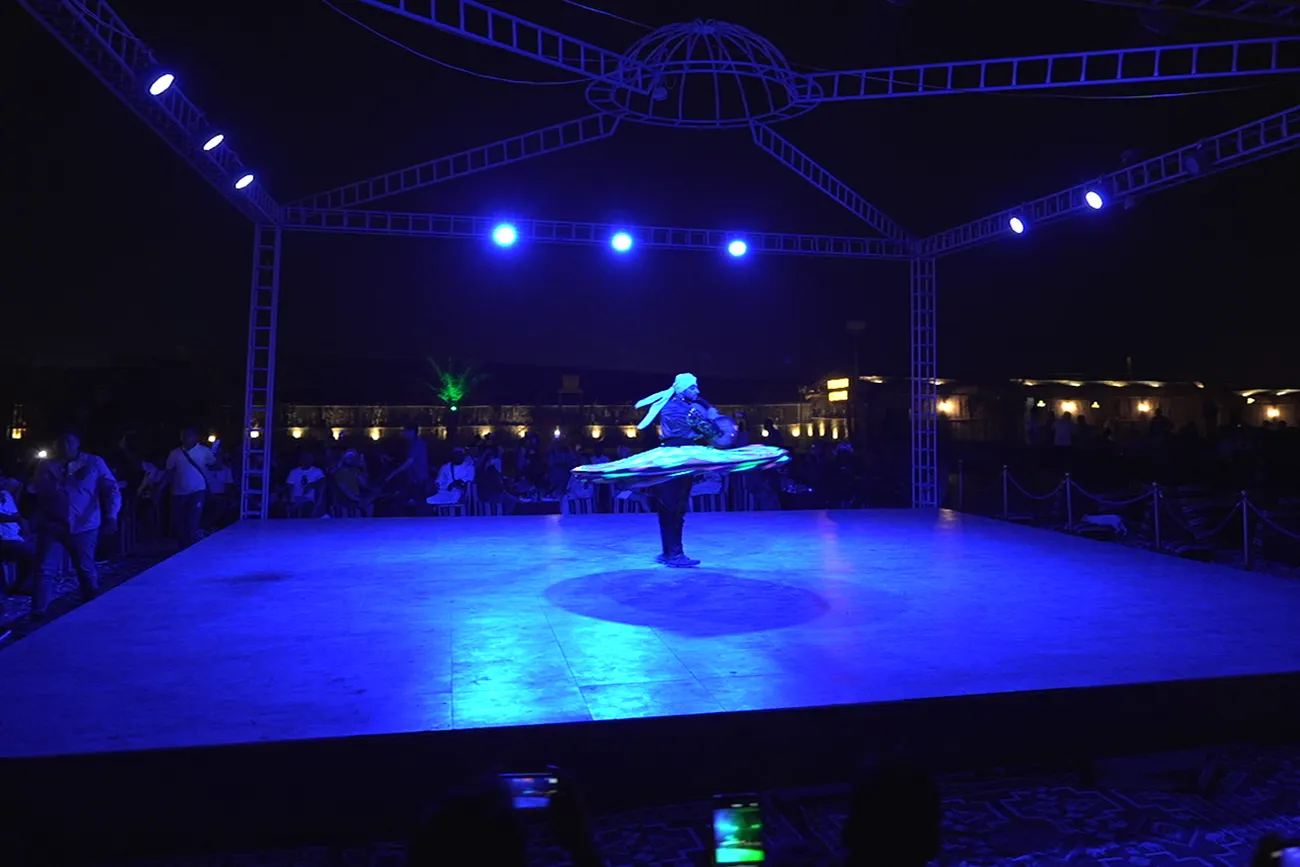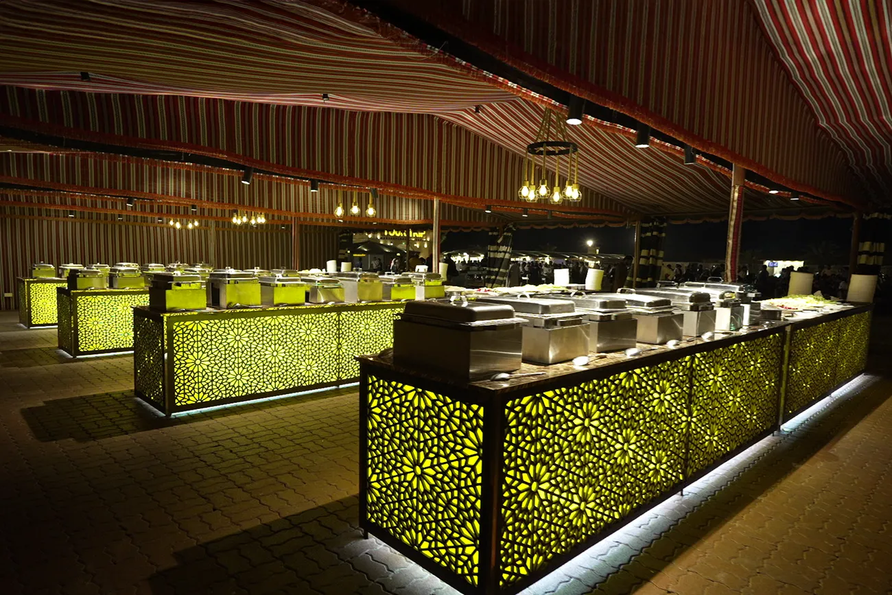 As night falls, indulge in a lavish BBQ buffet dinner, followed by mesmerizing live entertainment, including a Tanoura show, Belly Dance, and an unforgettable Fire Show.