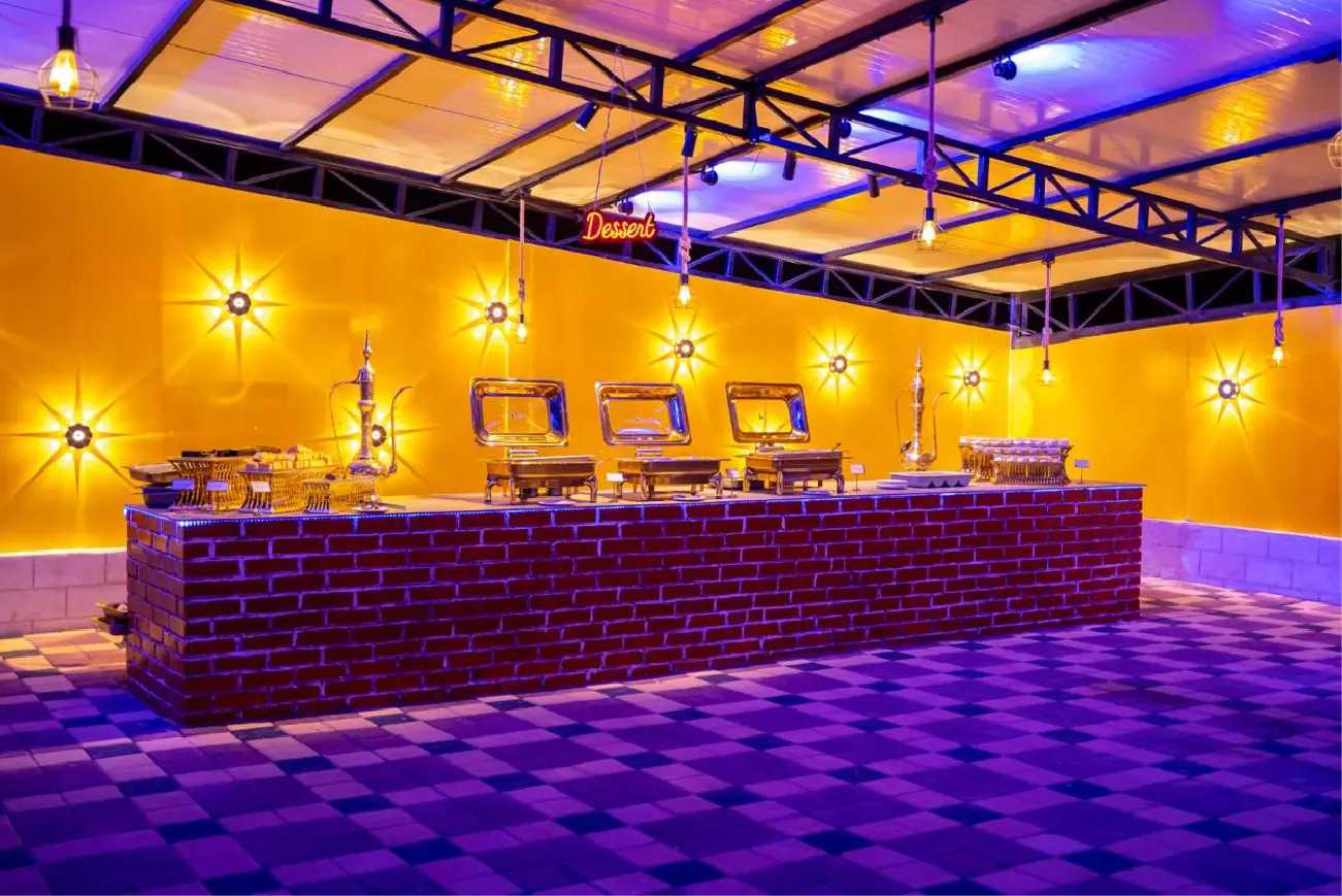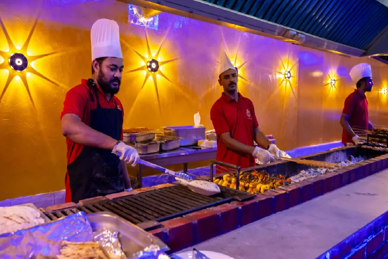 π½οΈ Luxury BBQ Buffet: Indulge in a luxurious BBQ buffet, featuring a wide selection of vegetarian and non-vegetarian dishes like grilled meats, rice, and salads.